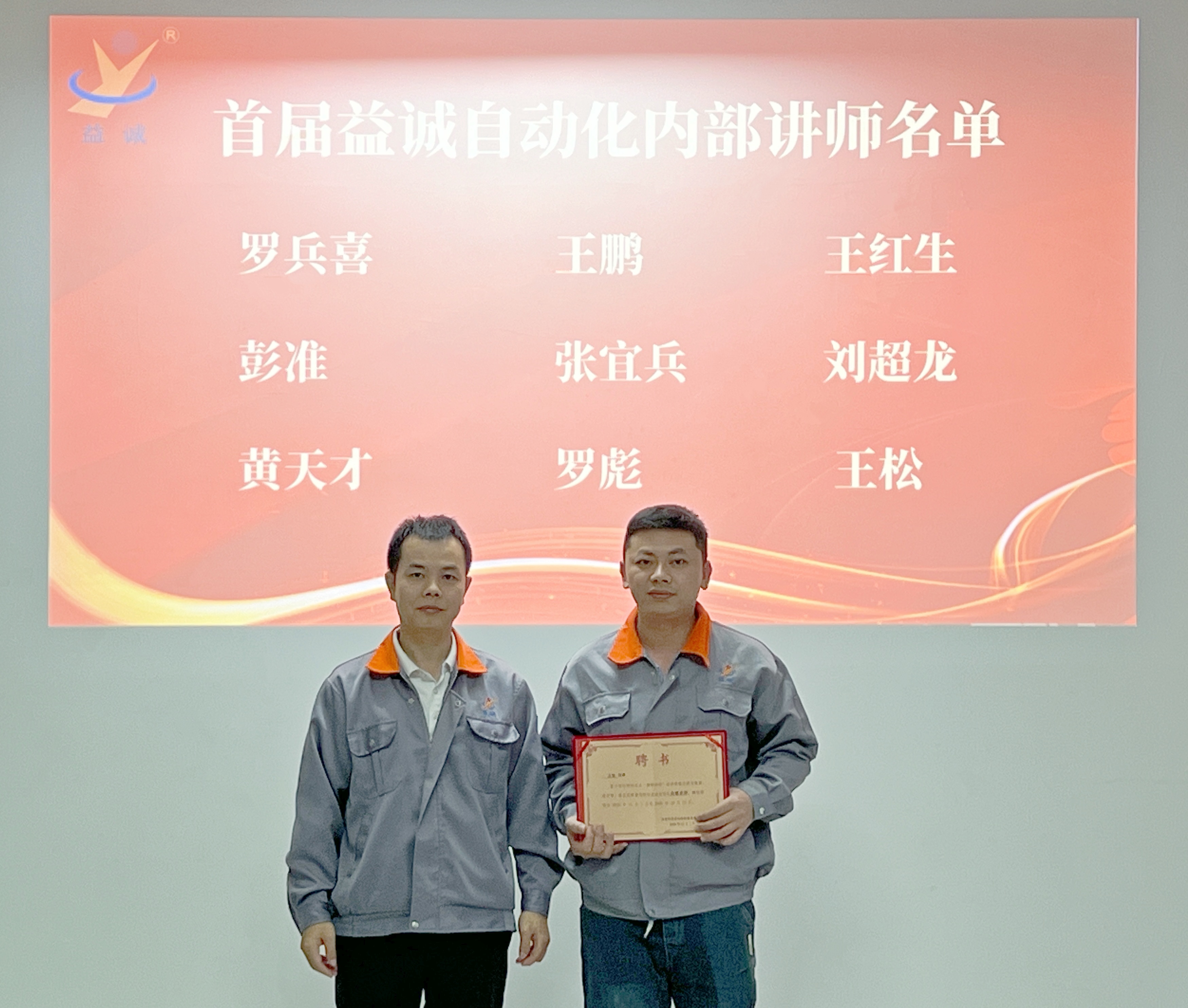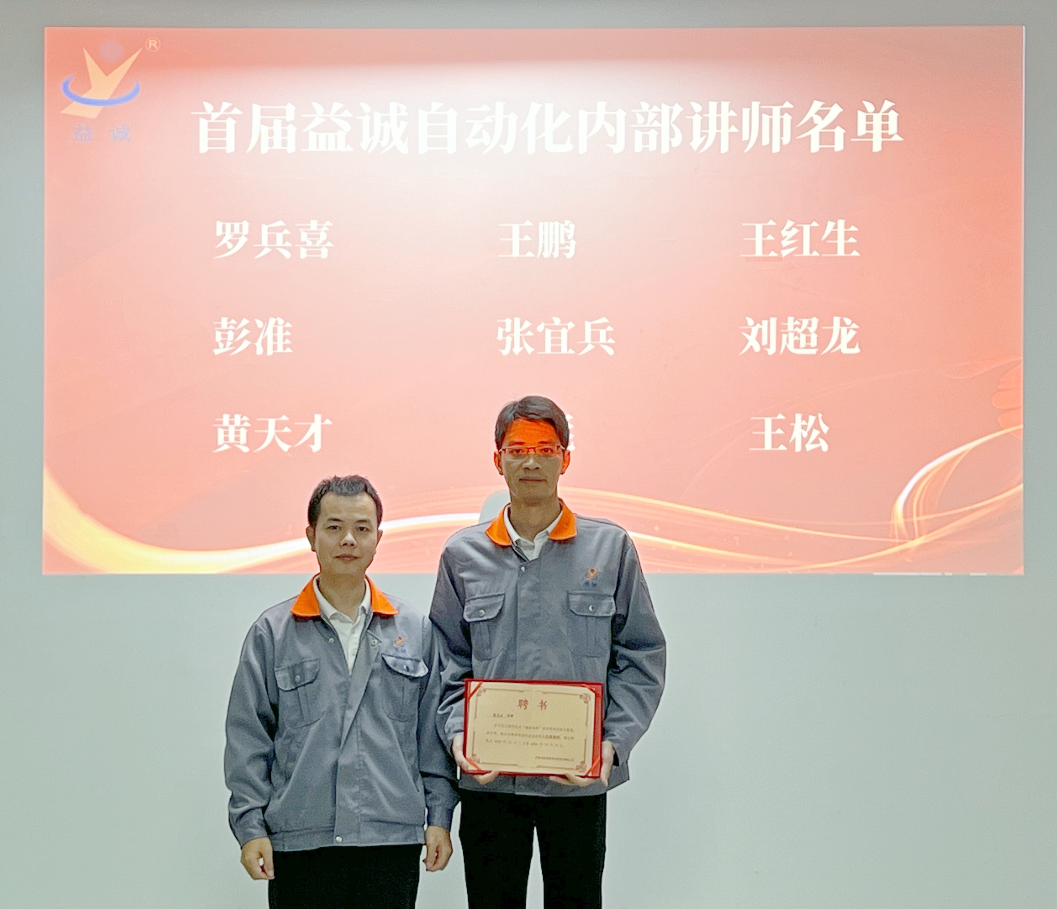 益誠自動化總經(jīng)理潘總親自為首批內(nèi)部講師頒發(fā)聘書,潘總勉勵大家:“這張聘書承載的不僅是榮譽(yù)與信任,更是責(zé)任與期待,希望大家成為公司智慧傳遞的橋梁,在教與學(xué)中激發(fā)思考,在傳與承中凝聚力量,為公司高質(zhì)量發(fā)展持續(xù)注入人才動能。”