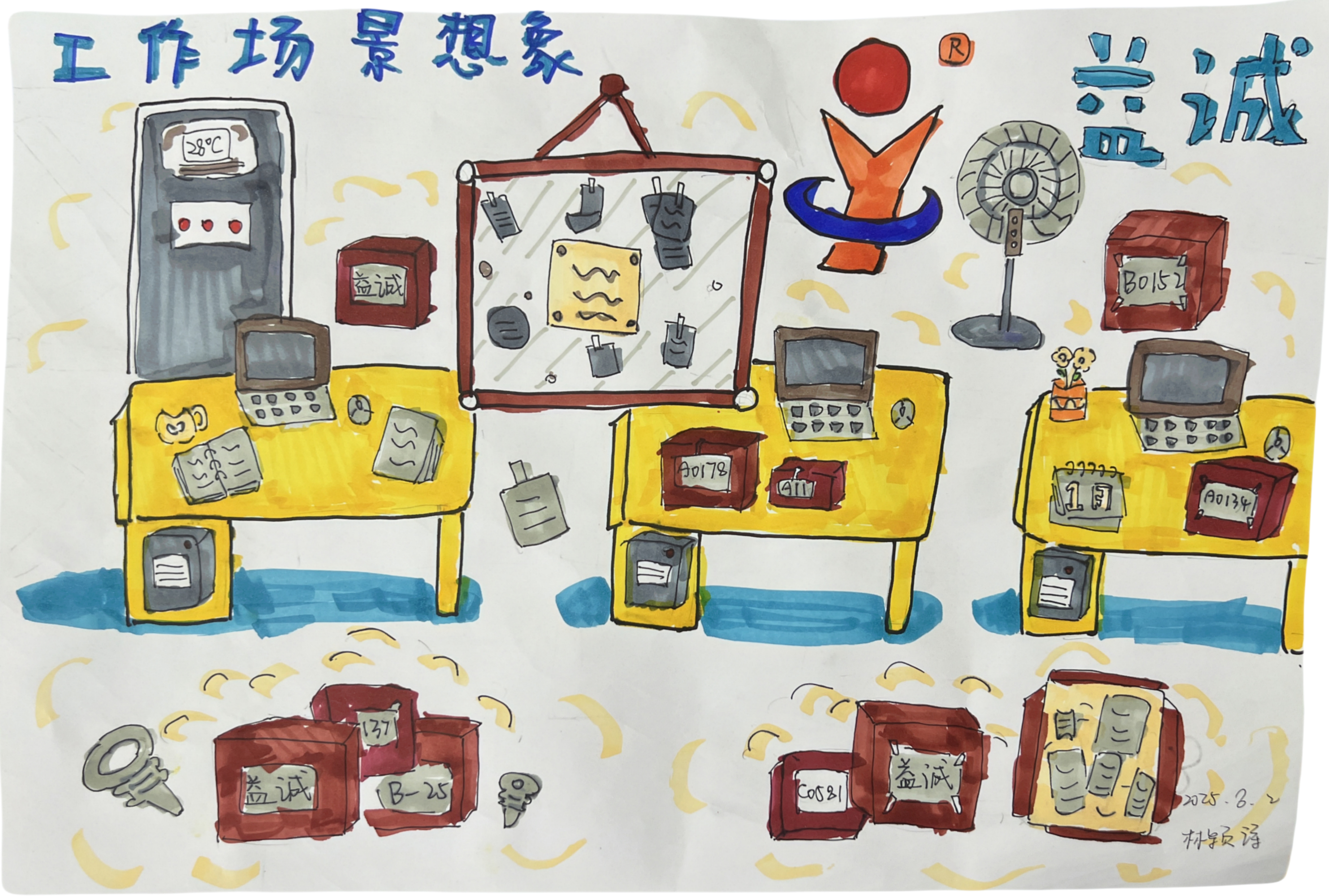 孩子們結(jié)合自己的奇思妙想,對(duì)益誠(chéng)LOGO進(jìn)行了大膽的創(chuàng)意設(shè)計(jì),將益誠(chéng)LOGO設(shè)計(jì)成了充滿未來(lái)感的科技圖案,原本簡(jiǎn)潔的標(biāo)志在孩子們的筆下變得生動(dòng)有趣,仿佛被賦予了新的生命。