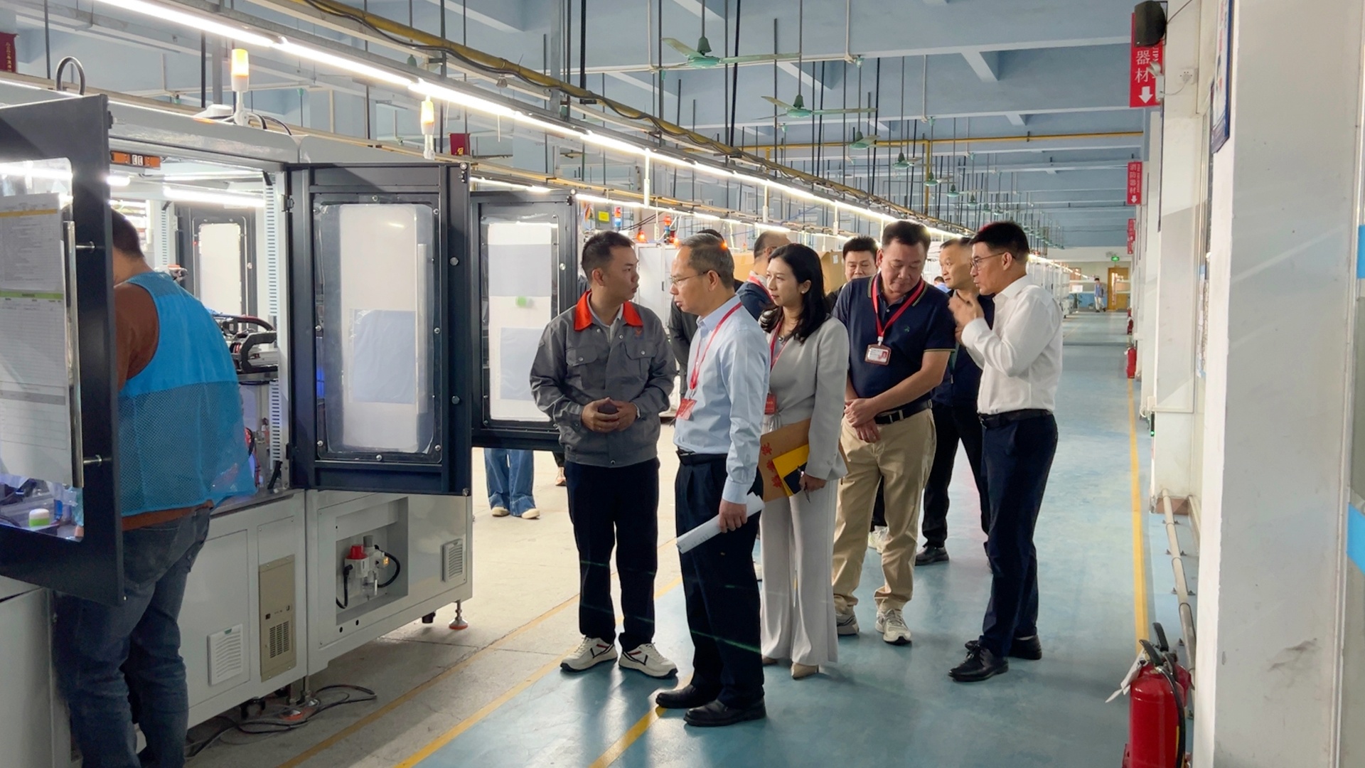 調(diào)研伊始,袁董事長(zhǎng)與潘總經(jīng)理帶調(diào)研團(tuán)隊(duì)實(shí)地參觀了益誠(chéng)自動(dòng)化的智能生產(chǎn)車間,為到訪調(diào)研團(tuán)隊(duì)詳細(xì)介紹了益誠(chéng)研制設(shè)備的性能特點(diǎn)、技術(shù)優(yōu)勢(shì)以及在生產(chǎn)流程中的關(guān)鍵作用,讓調(diào)研團(tuán)隊(duì)對(duì)益誠(chéng)自動(dòng)化的生產(chǎn)智造水平有了直觀且深入的了解。