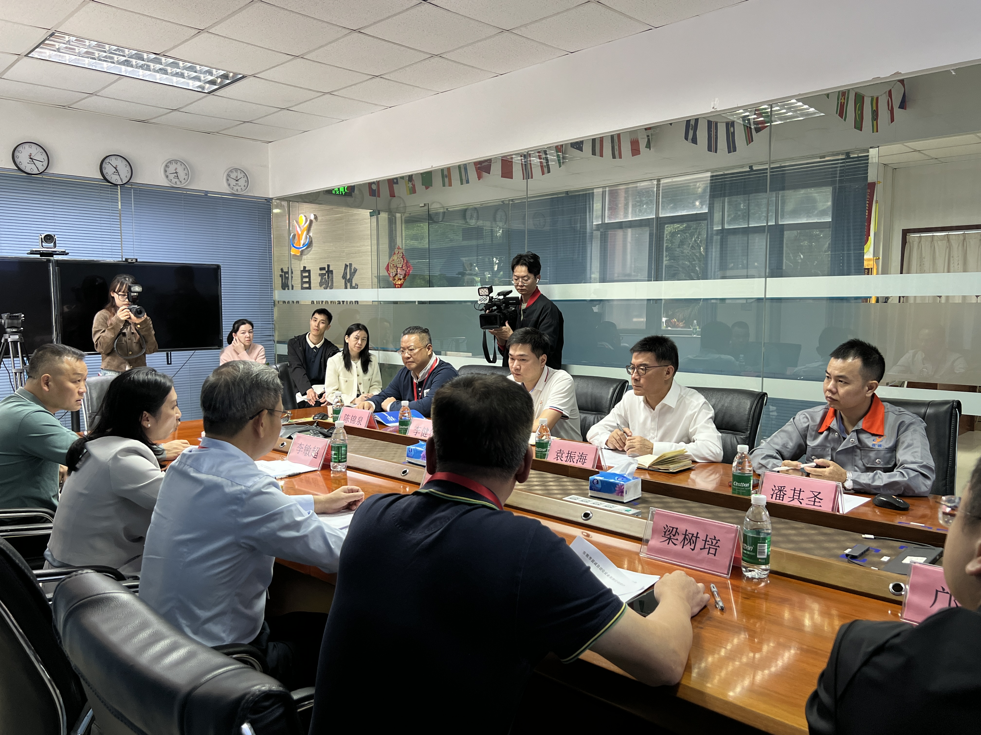 參觀結(jié)束后,雙方舉行了座談會(huì)。會(huì)上,袁董事長(zhǎng)與潘總經(jīng)理圍繞公司的發(fā)展戰(zhàn)略,從生產(chǎn)經(jīng)營(yíng)方針的精準(zhǔn)制定、智能技術(shù)創(chuàng)新的持續(xù)開(kāi)發(fā),到全球市場(chǎng)的積極開(kāi)拓等多個(gè)維度,結(jié)合AI智能技術(shù)在自動(dòng)化行業(yè)的深度研究與廣泛應(yīng)用,與調(diào)研團(tuán)隊(duì)展開(kāi)了全面而深入的探討。交流過(guò)程氣氛熱烈,雙方在智能AI賦能企業(yè)發(fā)展這一關(guān)鍵議題上,達(dá)成了諸多共識(shí),收獲頗豐。